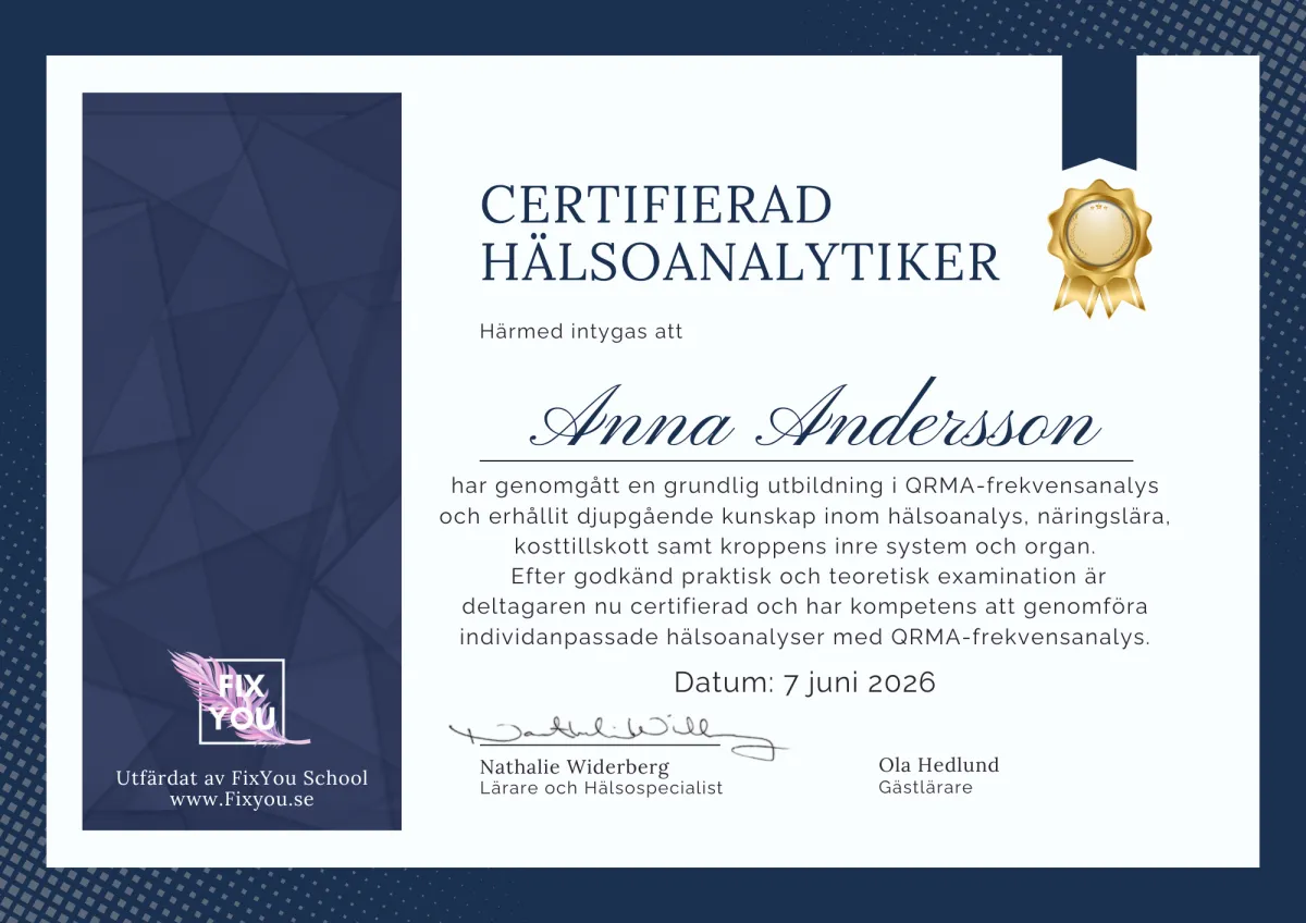 Färdig Certifierad Hälsoanalytiker 7 juni 2026